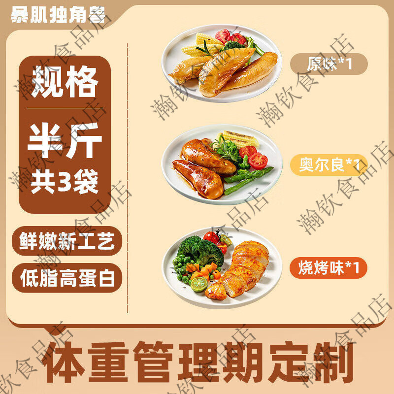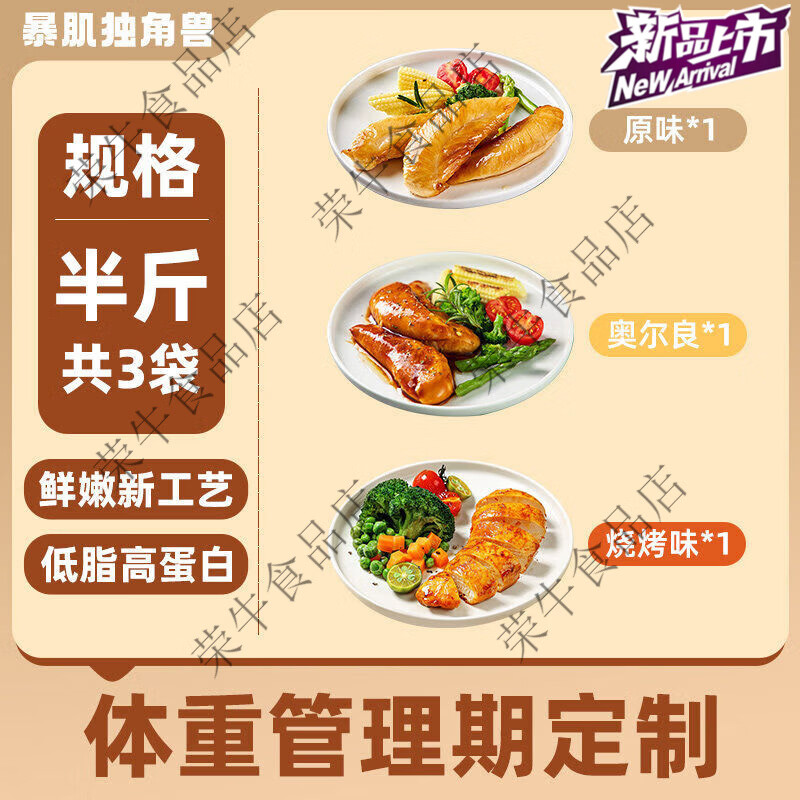 独角兽暴肌厨房低脂鸡胸肉即食健身餐饱腹0减少低脂肥肪主食零食正品保证 鸡胸肉半斤装原味+奥尔良+烧烤味50g*1
