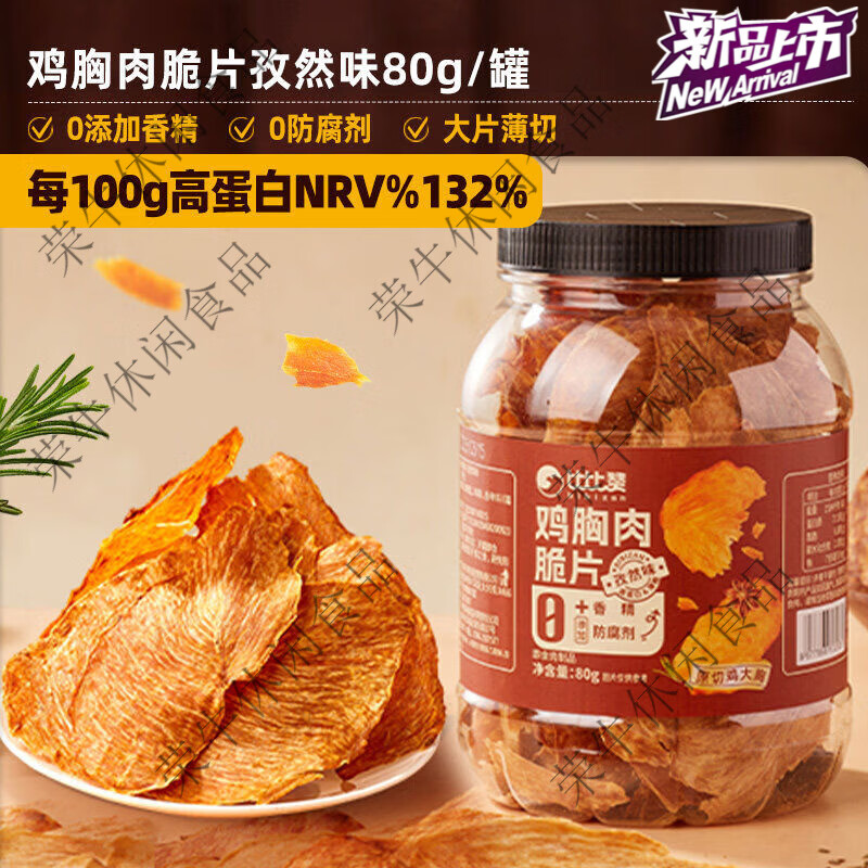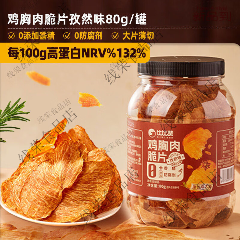 比比赞高蛋鸡胸肉脆即食低健身0餐解馋鸡肉干休闲小零食品 配料干净高蛋鸡胸肉脆孜然味80g*1罐