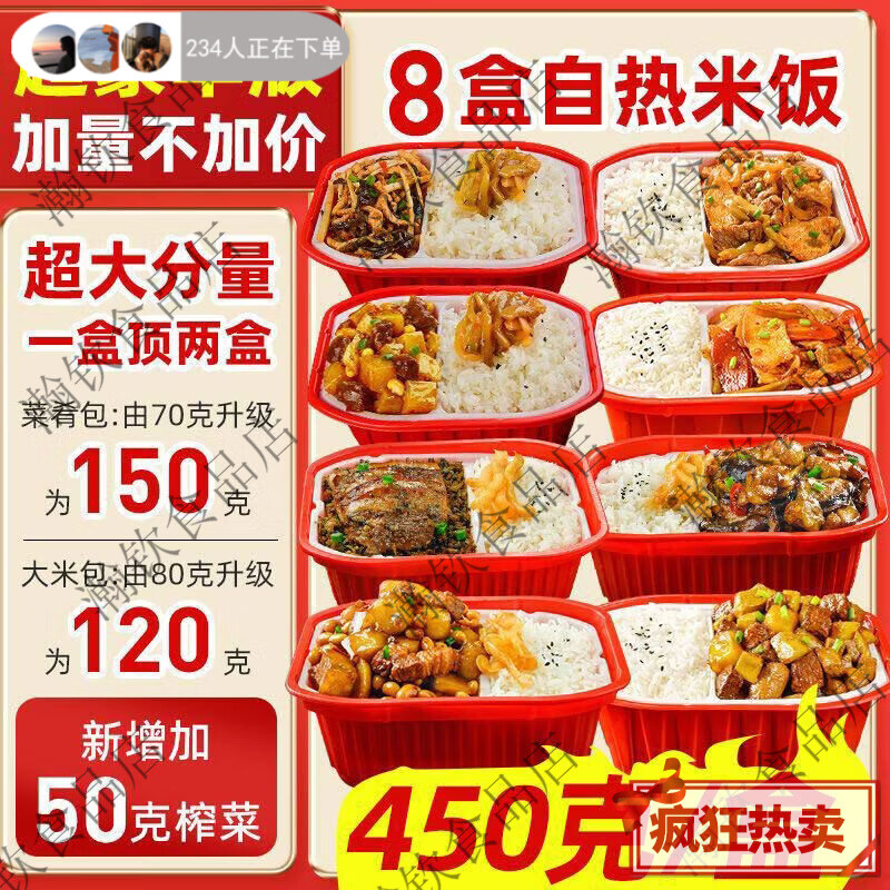 豪华版450g份量自热饭即食煲仔饭方便食自加热拌饭夜宵整箱 8个口味各1盒96选择