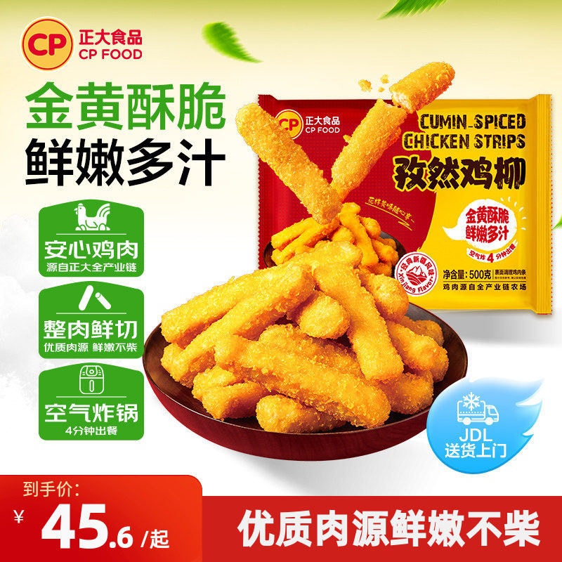 正大孜然鸡柳500g*3袋无骨鸡柳鸡块夜市小吃空气炸锅