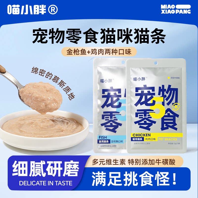 喵小胖猫咪零食鸡肉金枪鱼零食猫条幼猫成猫互动奖励湿粮拌粮