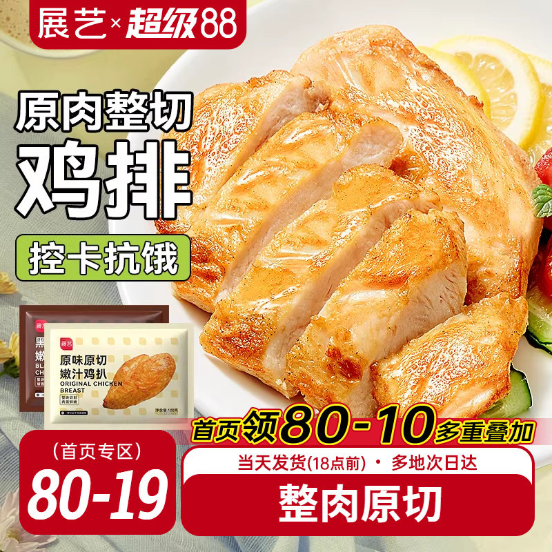 展艺香煎鸡排半成品非油炸鸡胸肉低脂冷冻汉堡排炸鸡空气炸锅食材