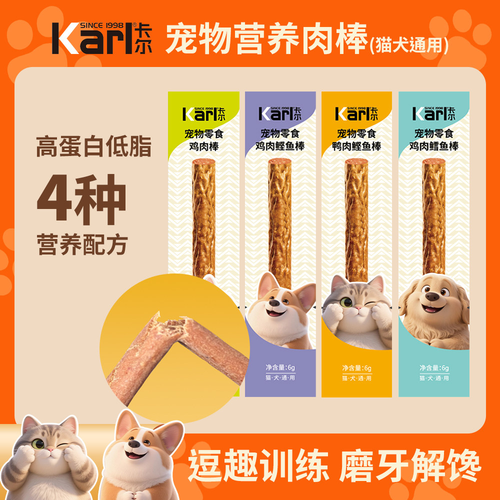 Karl卡尔营养棒犬猫通用零食鸡肉鸭肉鳕鱼纯肉条营养磨牙互动