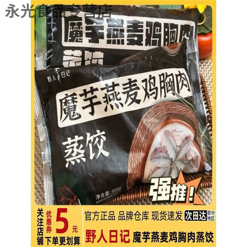 维莱瑞魔芋水饺 速发 野人日记魔芋饺子500g/袋 装 燕麦鸡胸肉蒸饺早餐 【尝鲜】魔芋蒸饺500g*1袋装