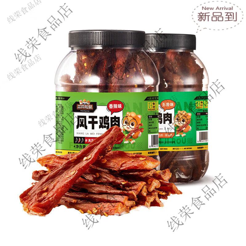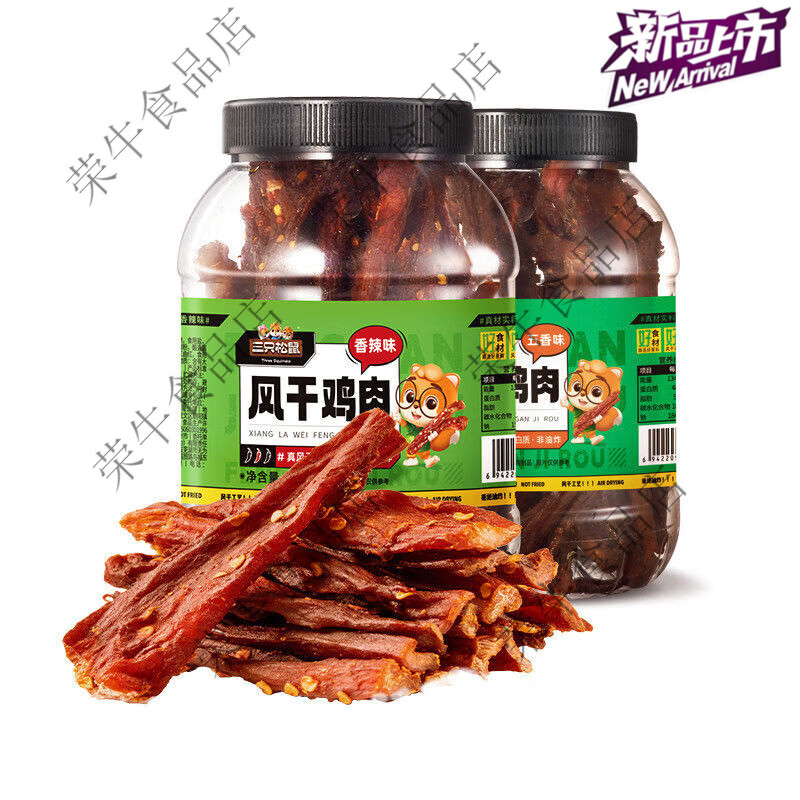 三只松鼠风干鸡肉五香味250g熟食鸡胸肉高蛋耐嚼解馋正品保证 五香味风干鸡肉250g*1罐
