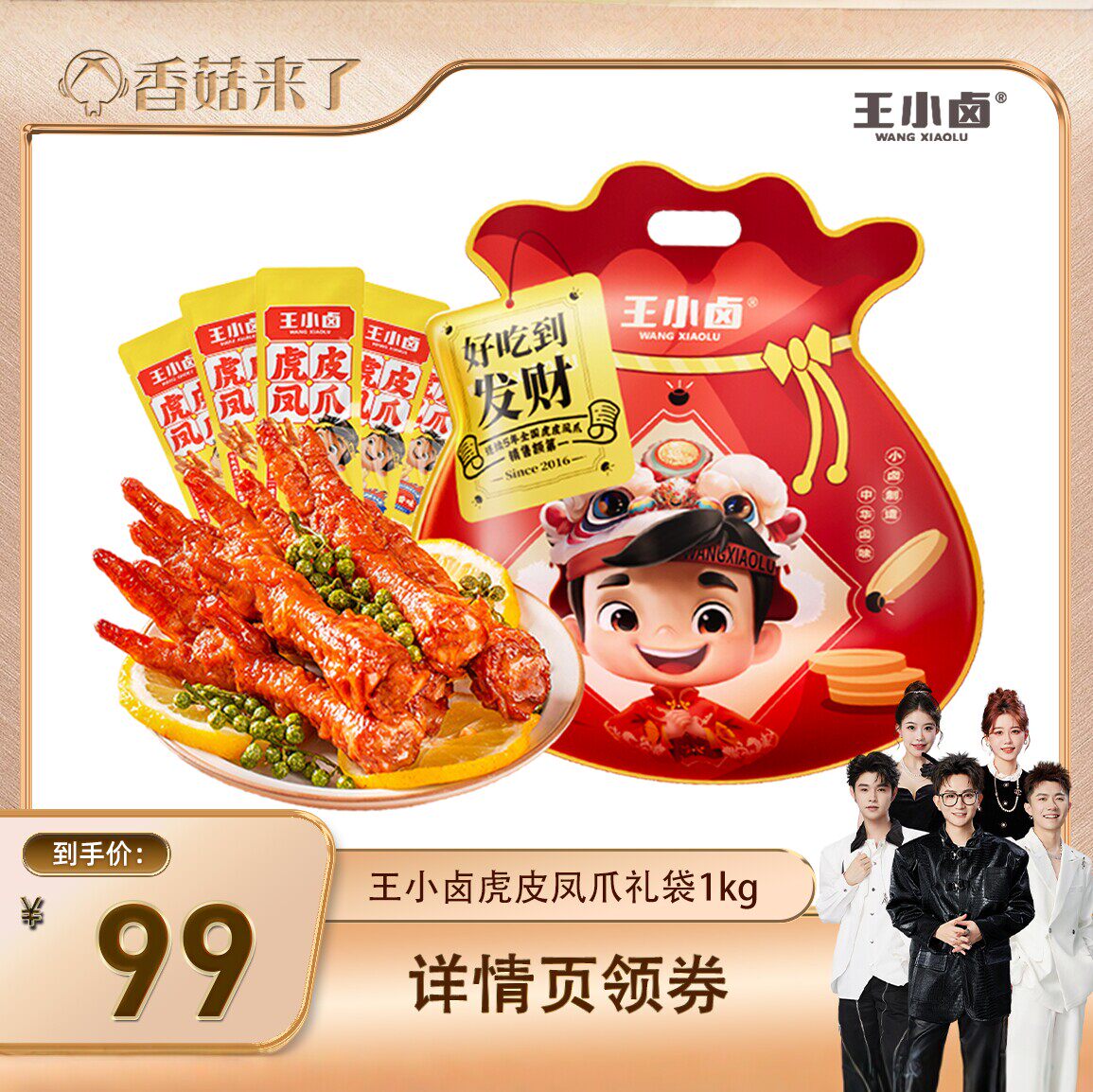 【香菇来了】王小卤礼袋福袋1kg虎皮凤爪鸡爪大礼包-y