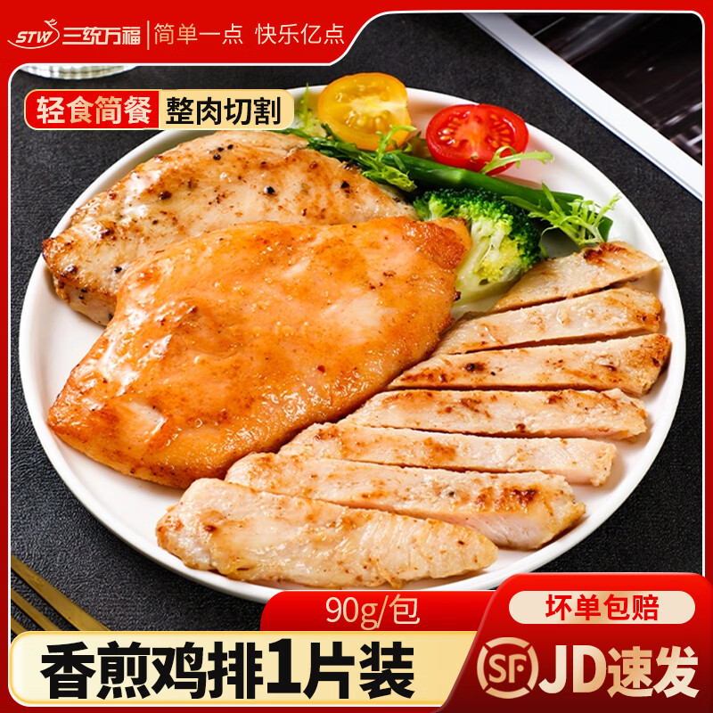 三统万福香煎鸡排90g低脂鸡胸肉健身代餐轻食即烹免腌制食材 【尝鲜装】香煎鸡排90g*1包