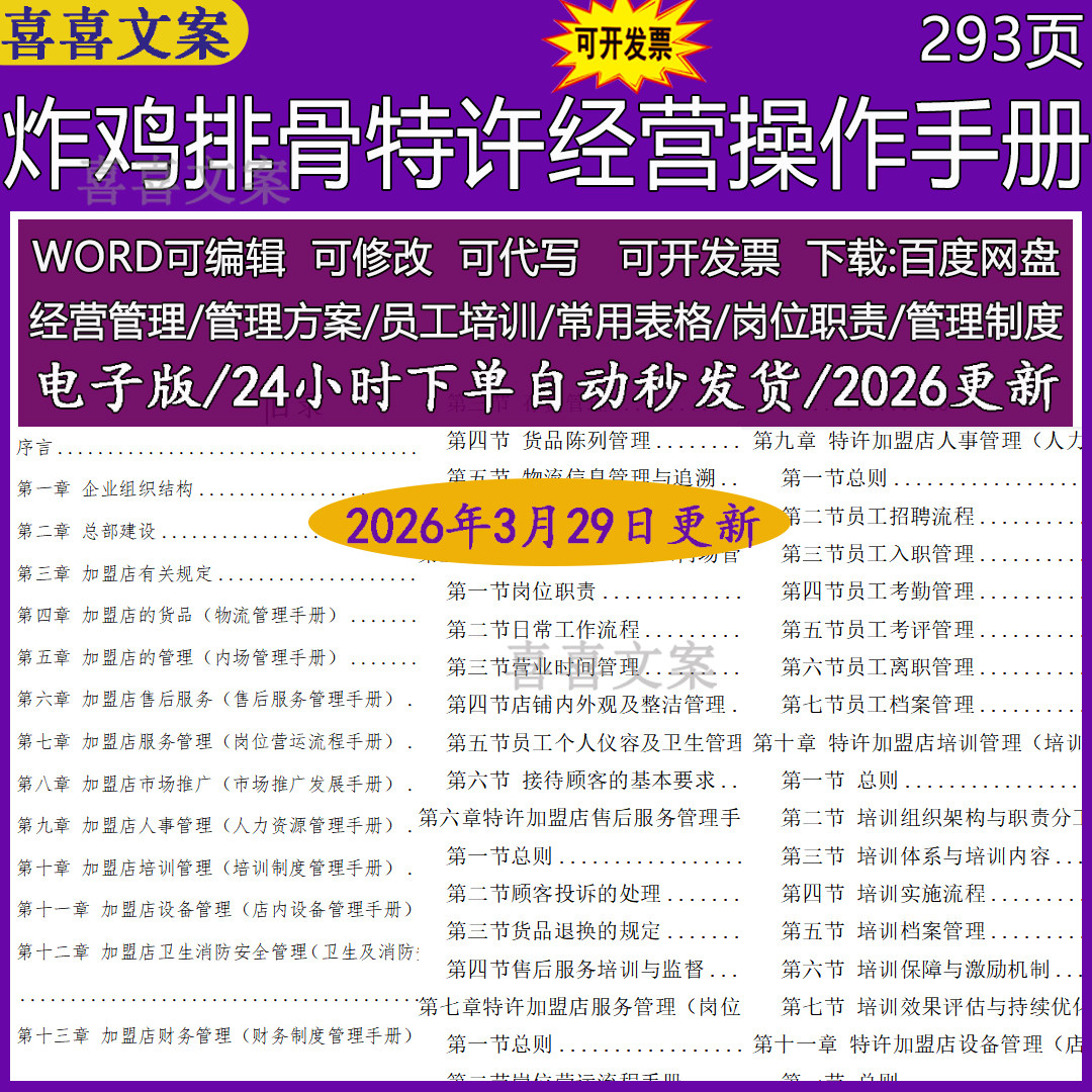 餐饮超市品牌炸鸡排骨饺子面馆特许经营操作手册培训制度管理手册