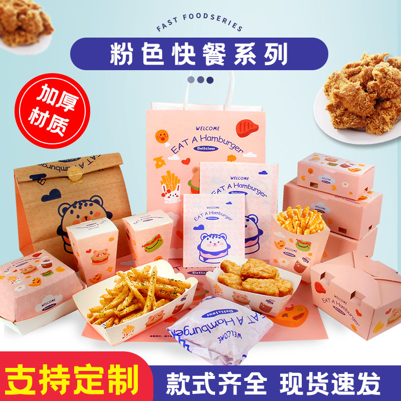 炸鸡汉堡鸡腿鸡翅鸡米花薯条鸡块盒外卖打包盒餐盘纸防油纸袋商用