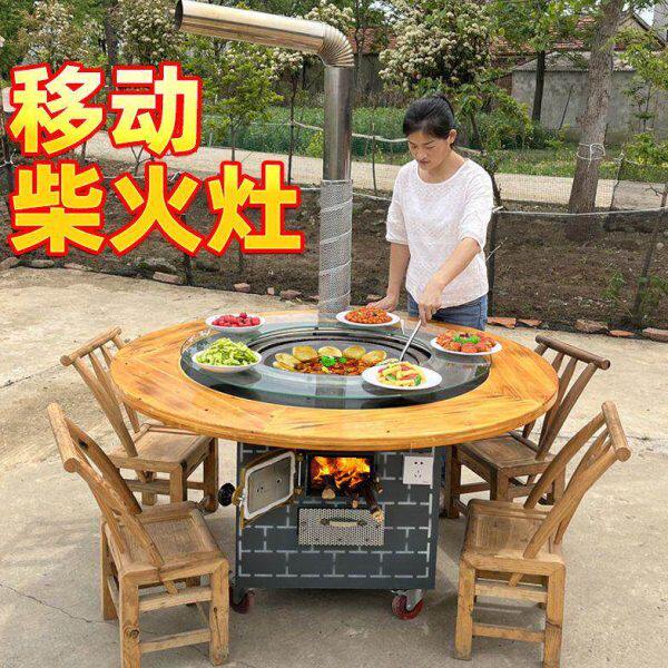不锈钢农村移动柴火灶柴火鸡灶台铁锅炖桌多功能节能特厚夜市