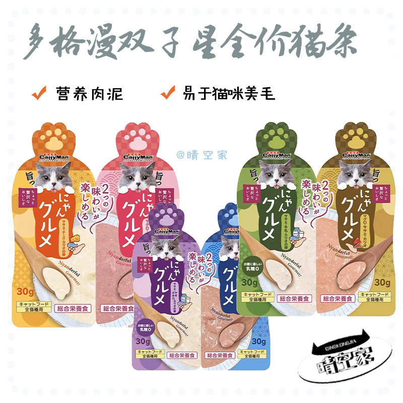 多格漫双子星猫酱羊奶牛奶鸡肉鱼肉猫餐包猫零食幼猫补水营养湿粮