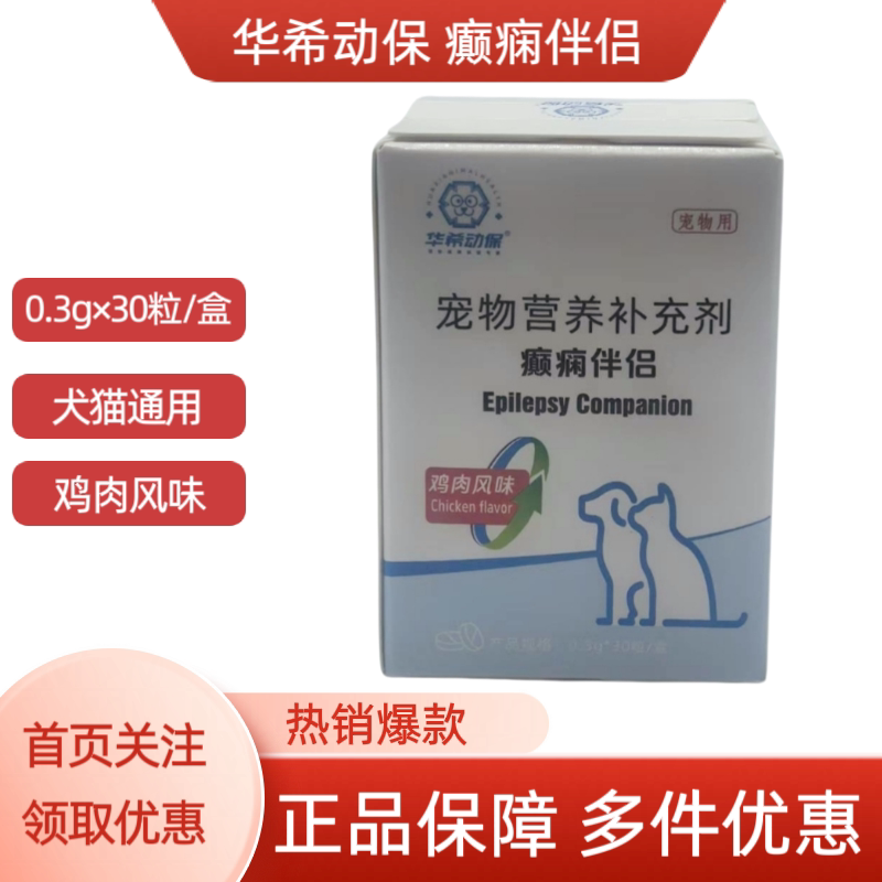 华希动保癫痫伴侣犬猫通用宠物营养补充剂鸡肉风味0.3g×30粒/盒