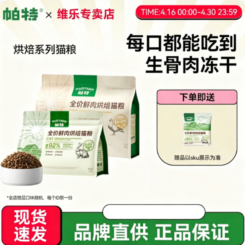 帕特烘焙猫粮鲜肉鸡肉兔肉乳鸽配方全价添加811主食冻干粉猫主粮