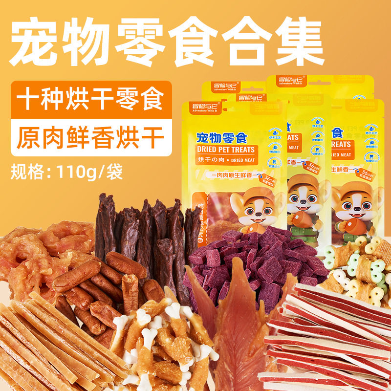 冒险与它烘干鸡肉手撕牛肉狗狗零食鸡肉绕奶棒成犬幼犬磨牙骨健康
