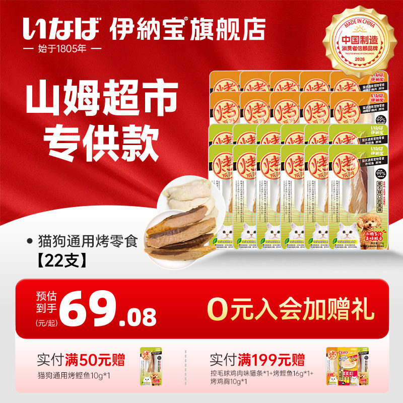 伊纳宝猫零食烤鸡小胸烤鲣鱼肉干猫狗通用鸡肉干营养肉条山姆同款