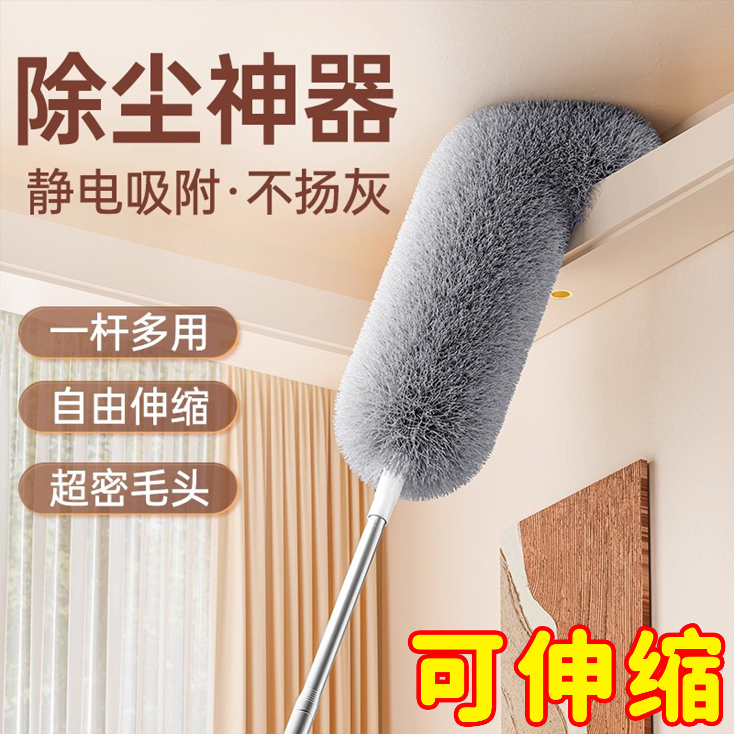 鸡毛掸子除尘扫灰家用可伸缩打扫天花板静电掸灰尘清洁蜘蛛网神器