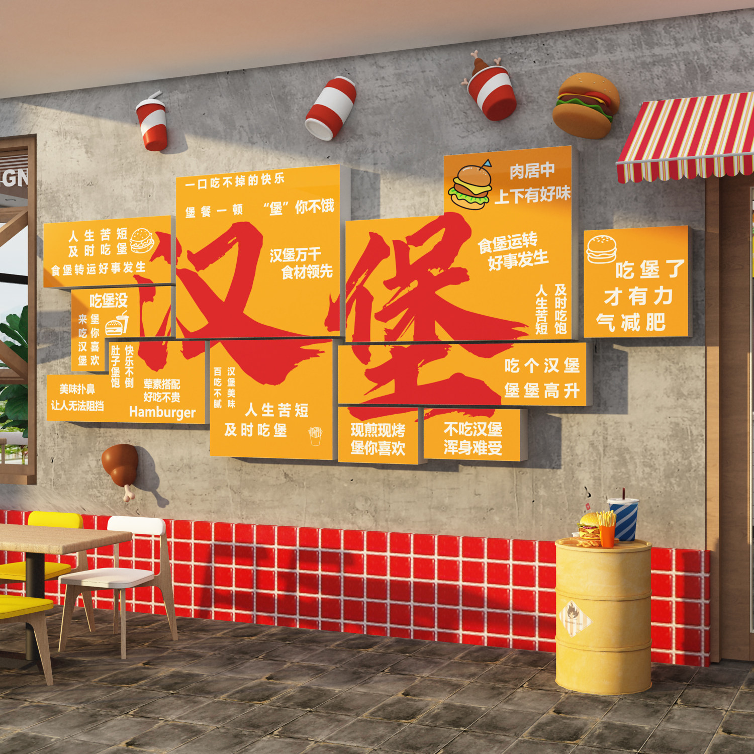 网红汉堡店墙面装饰品炸鸡店中国潮收银吧台布置广告背景贴纸壁画
