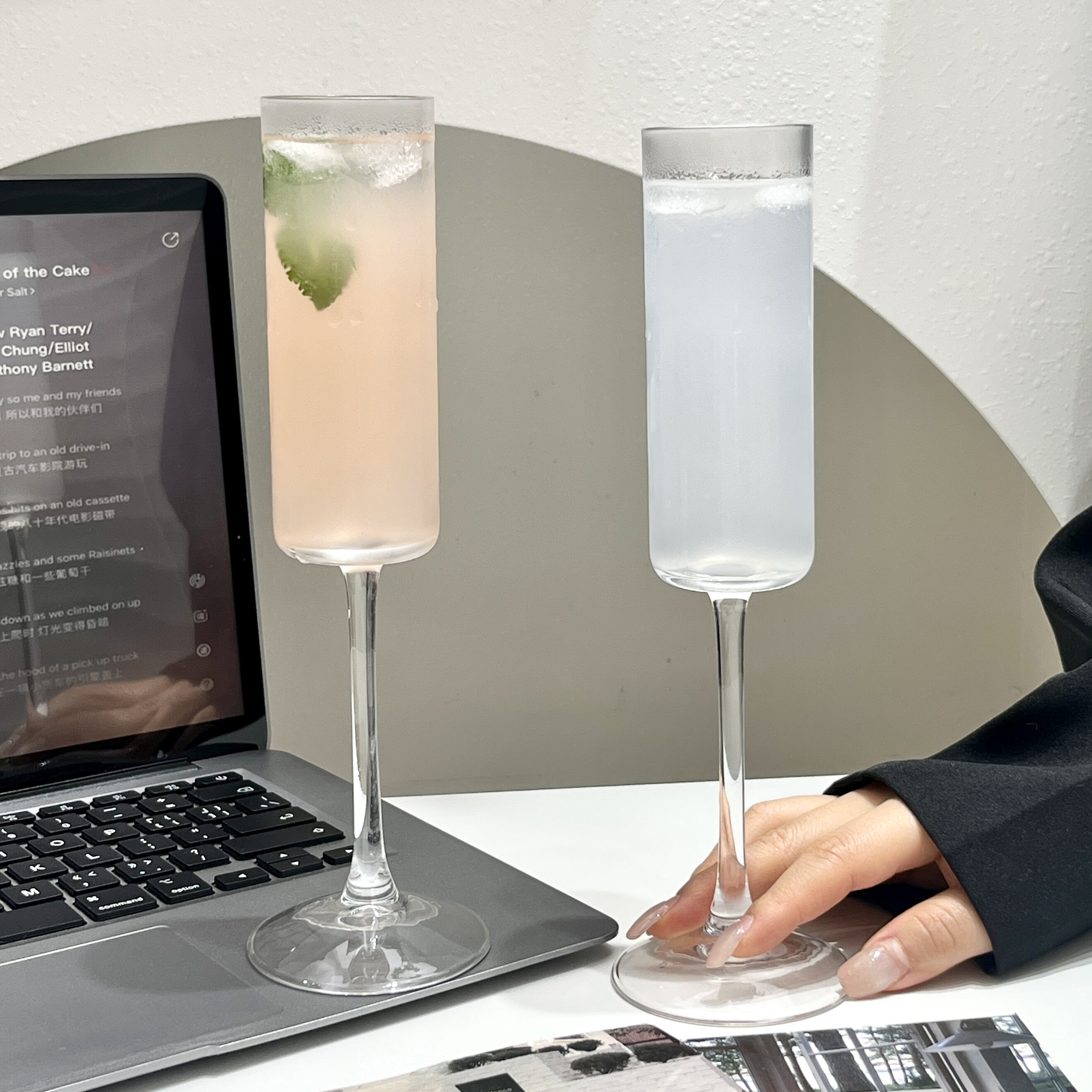 ins风高颜值收腰观山杯水晶玻璃杯果汁杯香槟杯鸡尾酒杯冷饮杯子