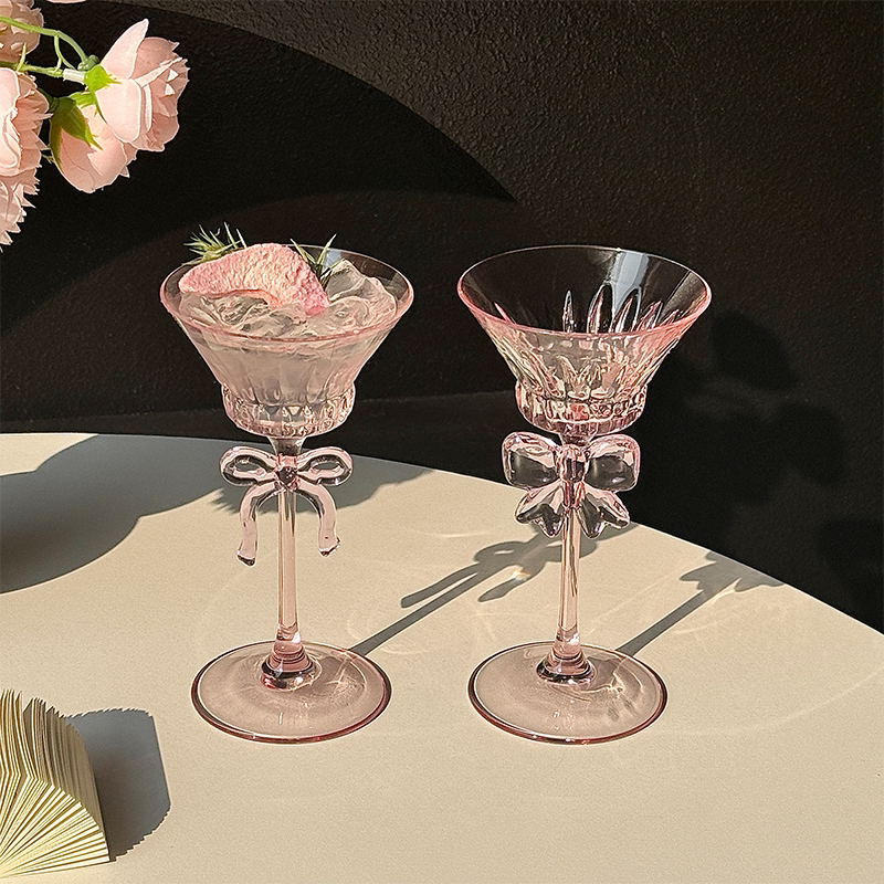 轻奢粉色蝴蝶结高脚玻璃杯ins风鸡尾酒杯创意家用高脚杯马天尼杯