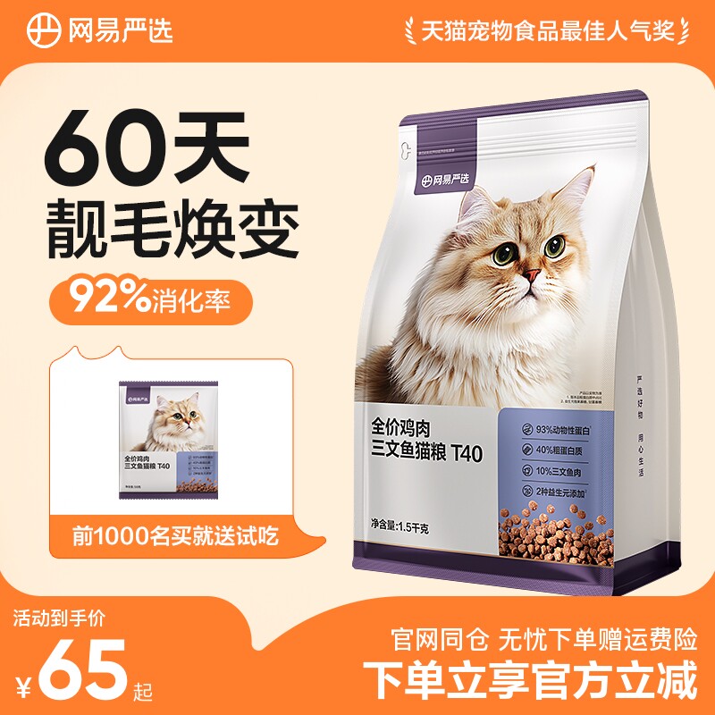 网易严选T40全价鸡肉三文鱼猫粮鲜肉成猫幼猫冻干高蛋白益生菌