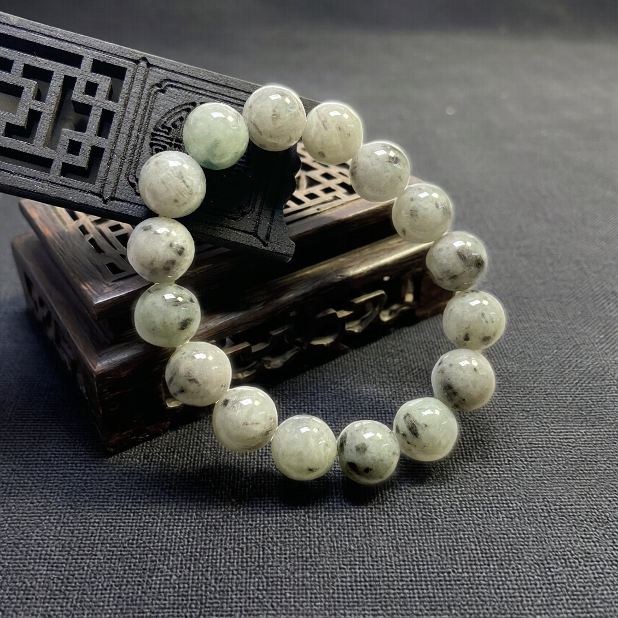 缅甸翡翠手串糯冰黑色灰色半山半水乌鸡手串A货圆珠手链13.7mm