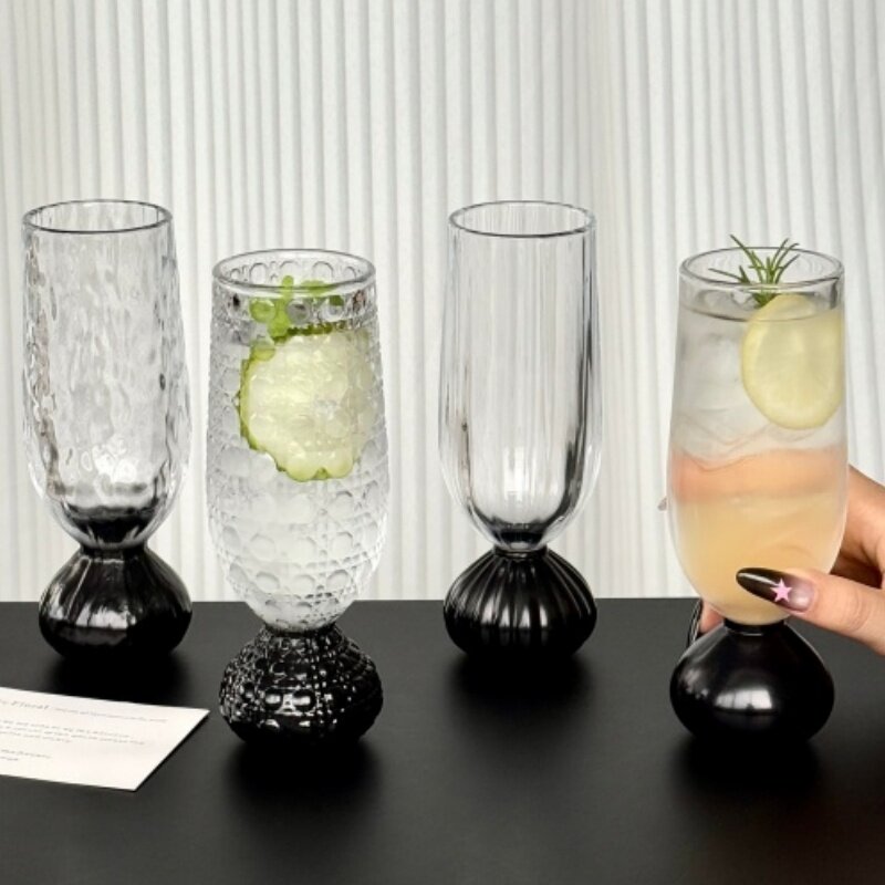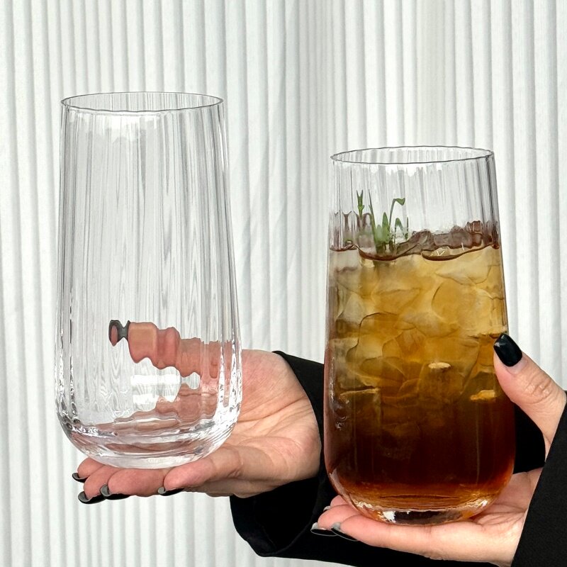 创意竖条纹玻璃鸡尾酒杯高颜值家用透明果汁杯