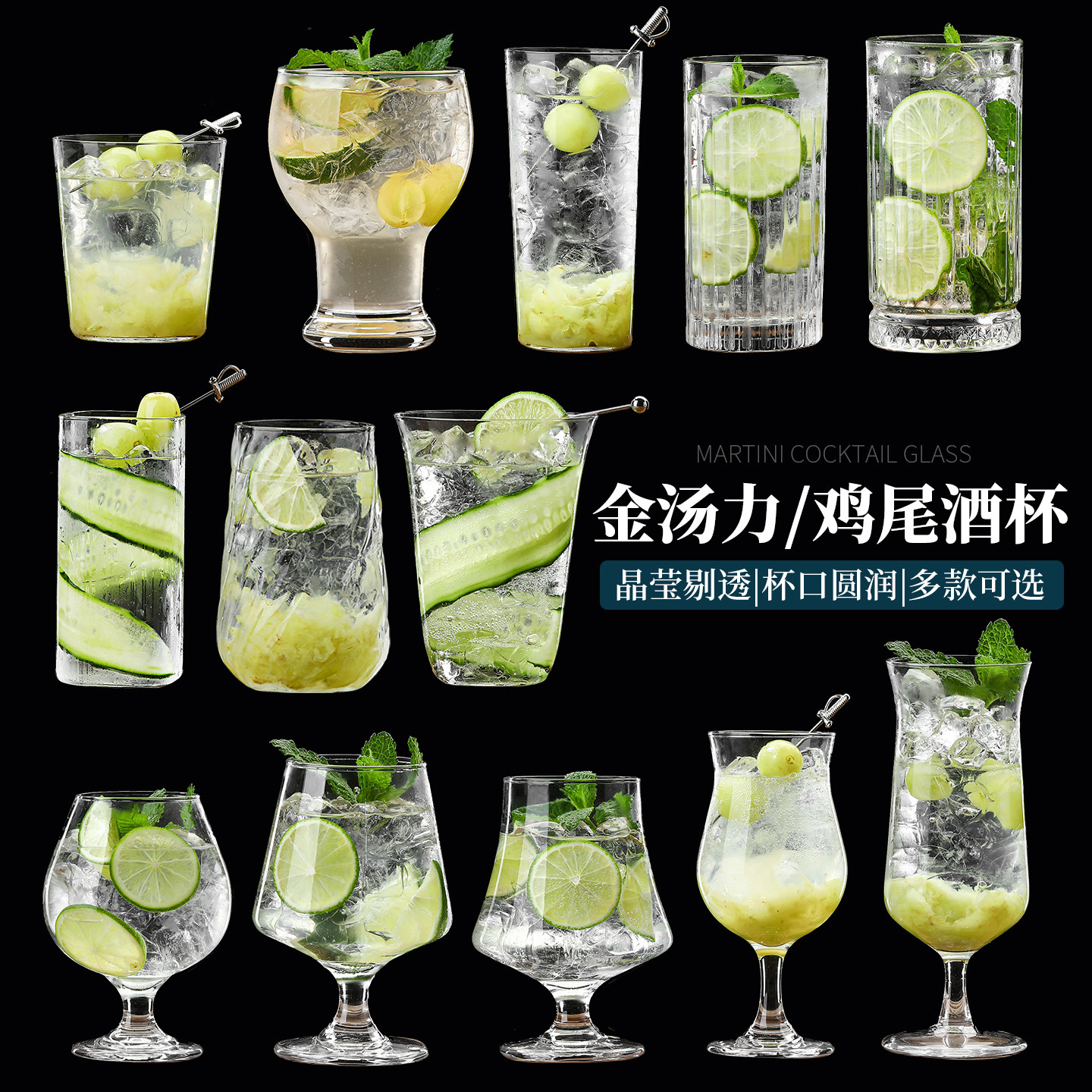 金汤力杯鸡尾酒杯日式超薄柯林杯莫吉托杯高脚果汁杯饮品调酒杯子