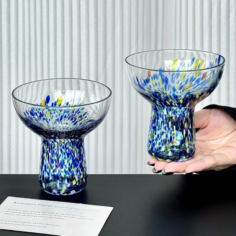 彩色玻璃高脚杯创意鸡尾酒杯爆裂纹艺术杯果汁杯饮品杯