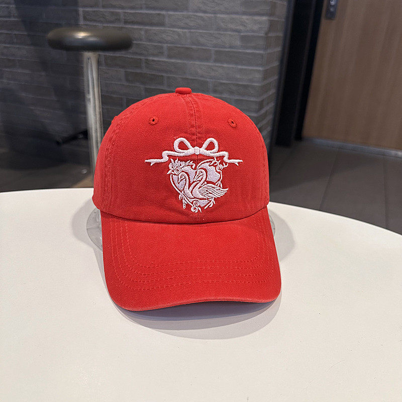时尚ins蝴蝶结幺鸡刺绣青年情侣韩版棒球帽纯棉软顶遮脸弯檐帽男