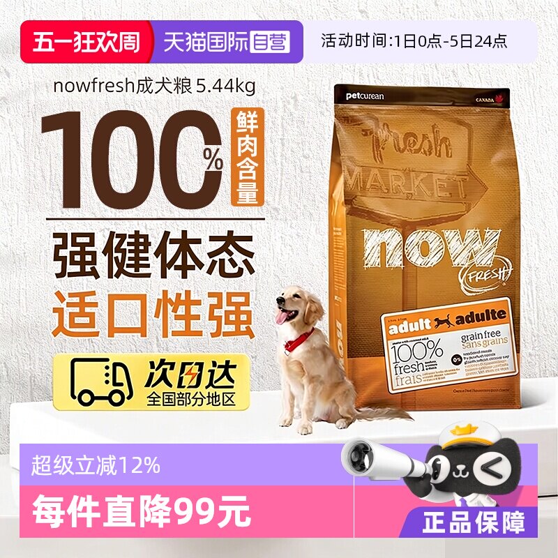 【自营】NowFresh纯鲜肉低敏无谷成犬火鸡三文鱼鸭肉狗粮5.44kg