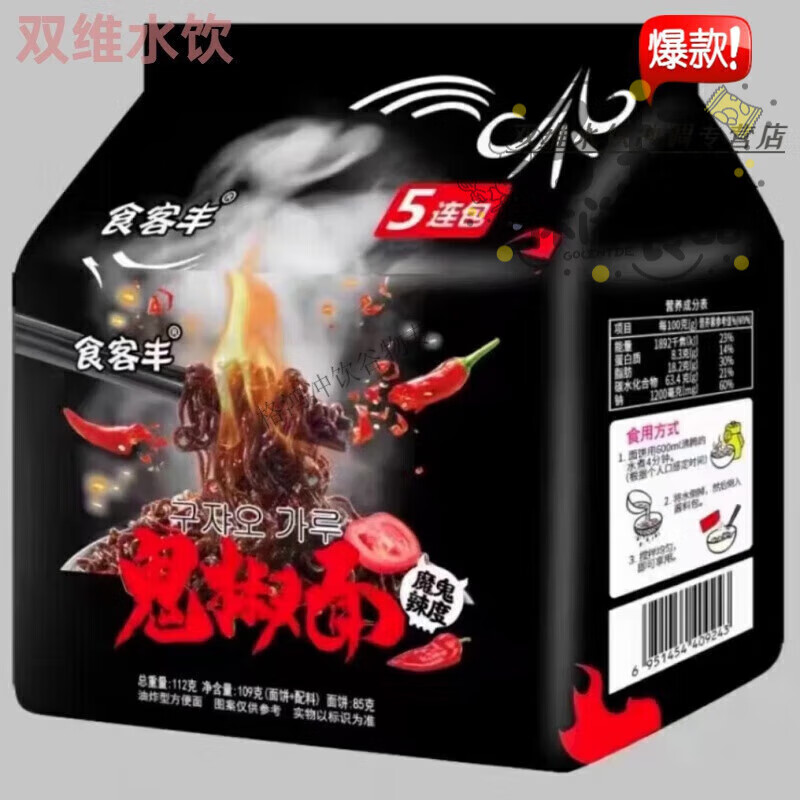 5连包奶油芝士火鸡面速食方便面食客丰鬼椒面榴莲大盘鸡拌面即食 [内含5袋]鬼椒面*1大包