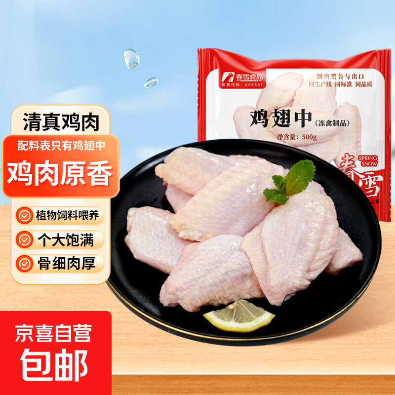 春雪 鸡翅中500g/袋 新鲜冷冻鸡翅炸食材烧烤鸡翅膀清真鸡中翅5 500g*1袋