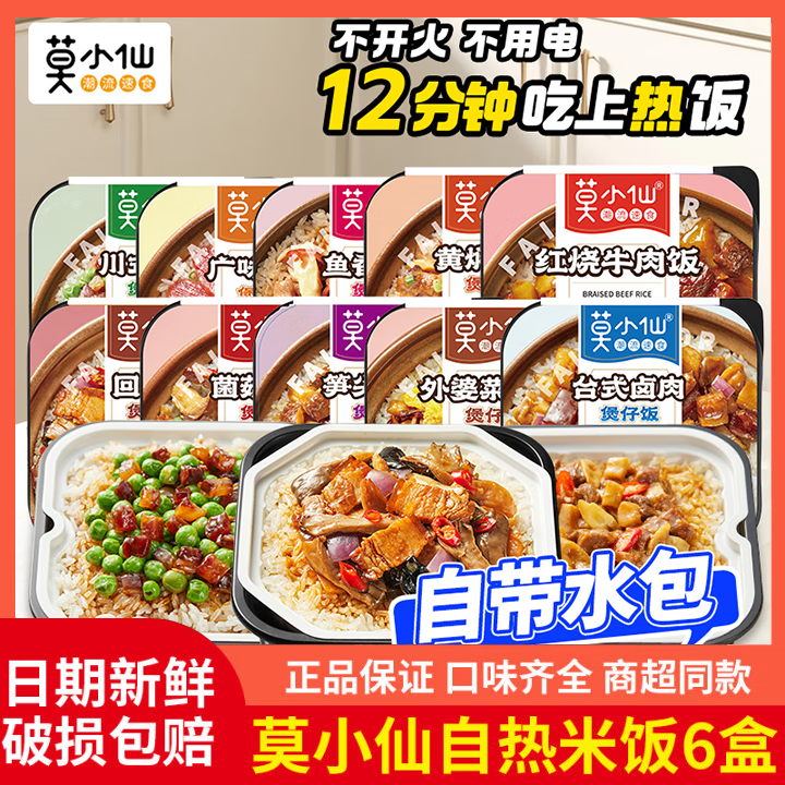 莫小仙自热米饭煲仔饭黄焖鸡速食方便米饭小火锅宿舍夜宵超大分量盒装 【6盒】6种口味各1盒共1610g