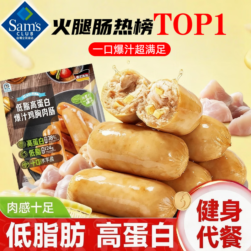 MEMBER'S MARK山姆超市正品代购低脂高蛋白爆汁鸡胸肉肠火腿肠烤肠腊肠 抢!买12赠4(实发16小包)还剩5份 低脂肪 高蛋白 山姆低脂NO1