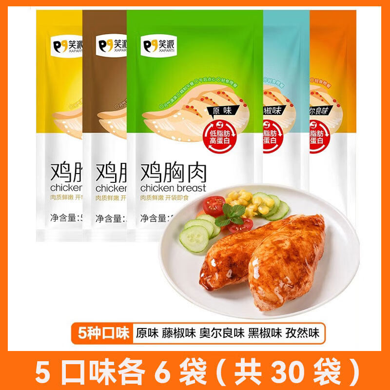 笑派即食鸡胸肉健身餐抗饿食减低脂解馋轻0零食鸡肉食品高蛋 折合1点8元袋30袋1500g