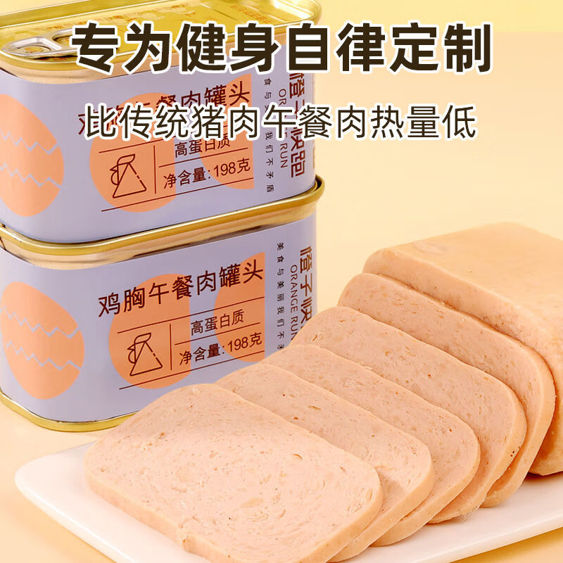 橙子快跑鸡胸午餐肉罐头代餐零食饱腹即食鸡胸肉户外健身人罐肉 鸡胸午餐肉罐头198g*1罐