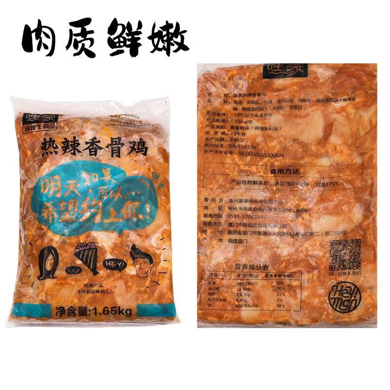 淘莱享私厨新品嘿蒙热辣香骨鸡半成品非即食未裹粉香辣味带骨鸡块冷冻油炸商 1包*1点65kg热辣香骨鸡数量填8是1箱 订单实付金额100起可发除偏远地区