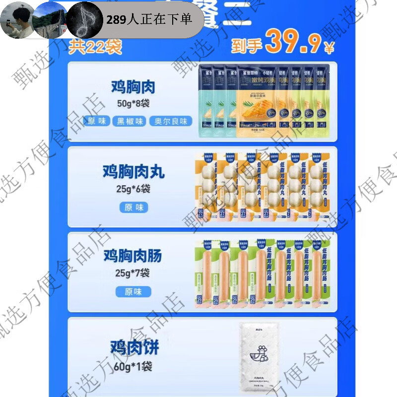 高蛋鸡胸肉健身一周轻食套餐餐主食零食食品 到手22件鸡胸肉*8+鸡胸肉丸*6+鸡胸肉肠*7+鸡肉饼*1