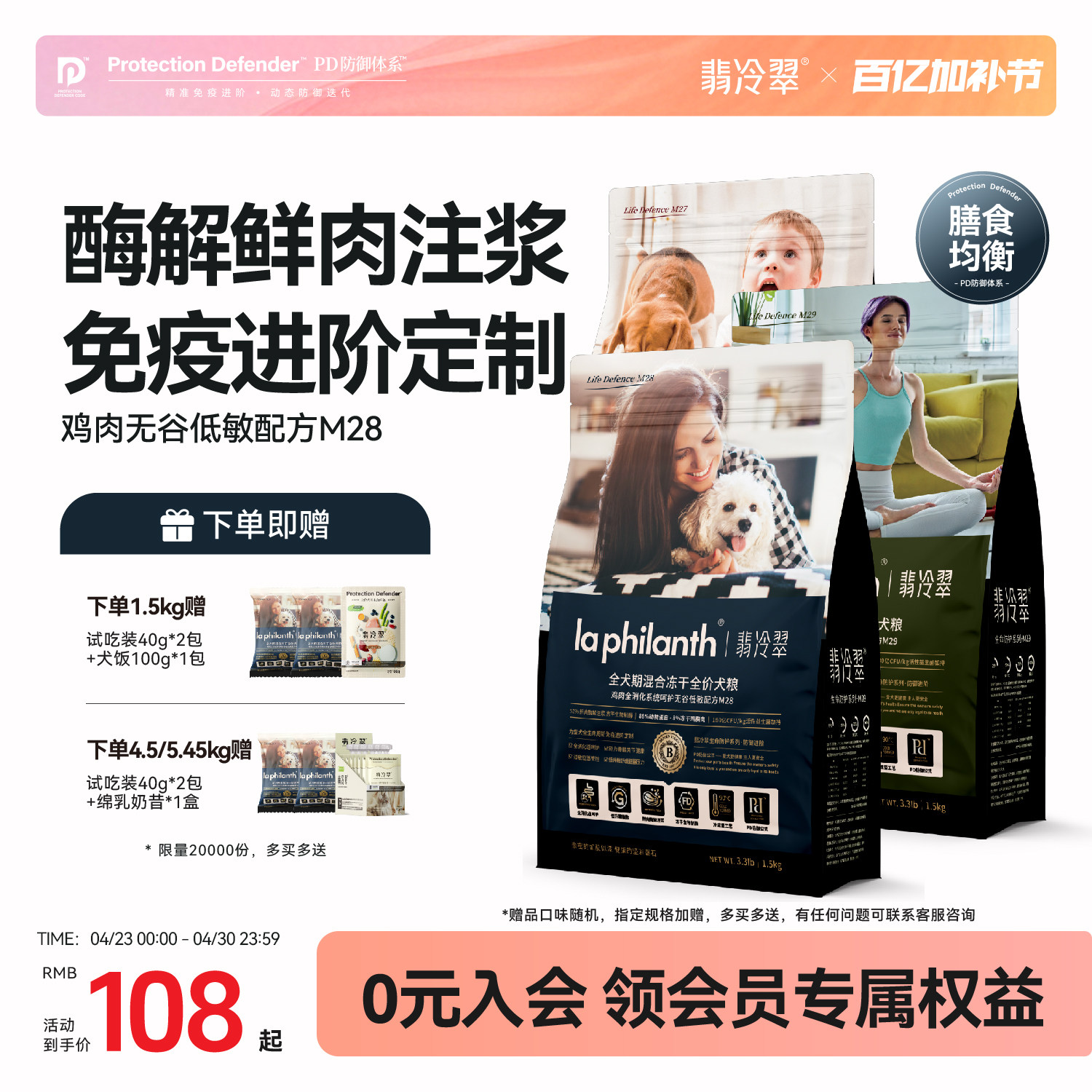 【囤货装】翡冷翠狗粮生命防护无谷低敏鸡鲜肉冻干成幼犬通用犬粮