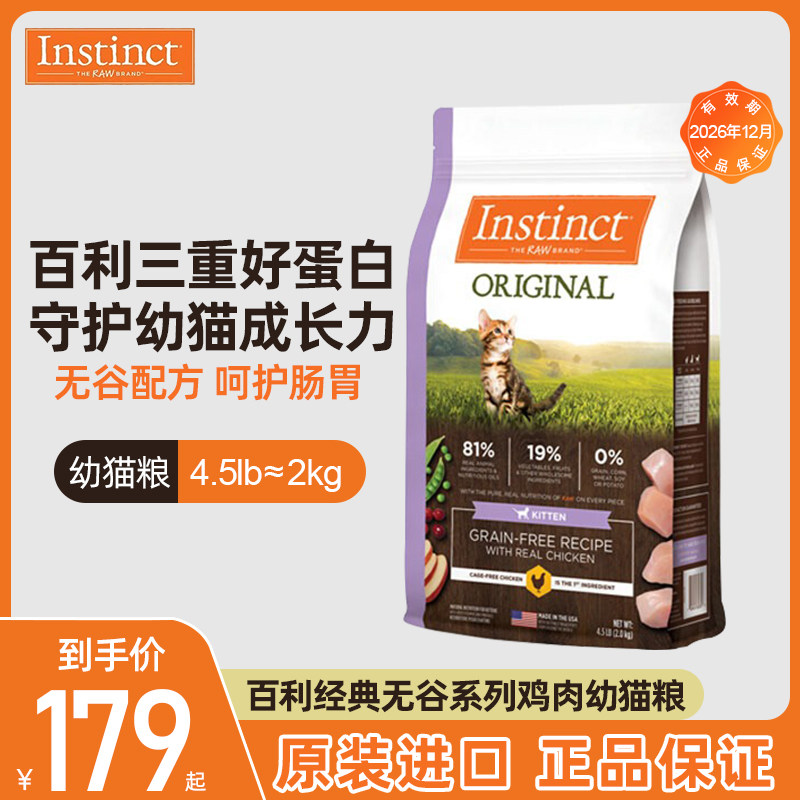 Instinct天然百利美国进口无谷鸡肉幼猫粮冻干高蛋白低敏生鲜本能