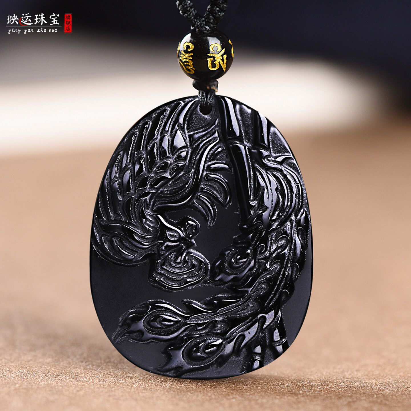 2026年黑曜石生肖属鸡吉祥物龙雀祥云吊坠生肖平安扣项链钥匙扣