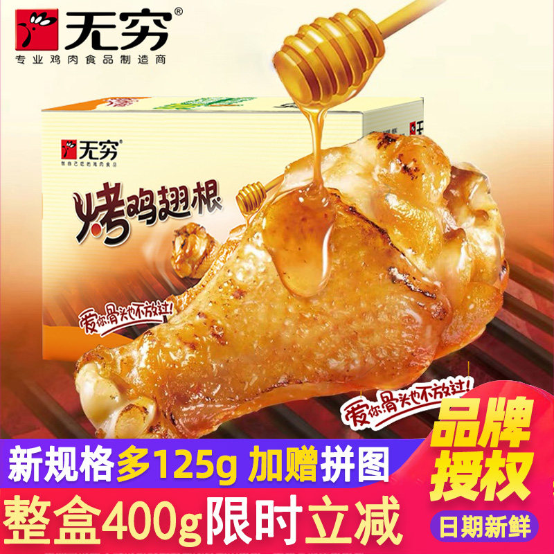 无穷鸡腿20包400g整盒装烤鸡小腿蜜汁味整箱香辣蜂蜜烤鸡翅根零食