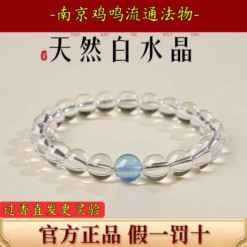 南京鸡鸣天然白水晶手串五行补缺海蓝宝水晶手链男女情侣款礼物