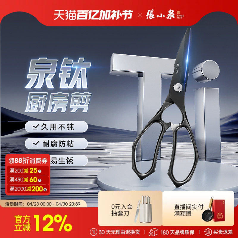 张小泉镀钛厨房剪刀全钢强力鸡骨剪不锈钢剪菜家用鸡鸭食物专用剪
