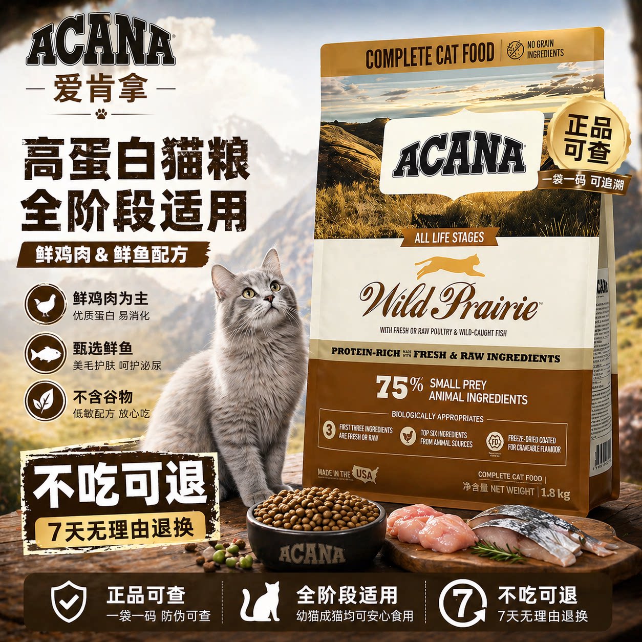 爱肯拿猫粮进口农场盛宴海洋盛宴无谷鸡肉鱼肉全价成幼猫通用