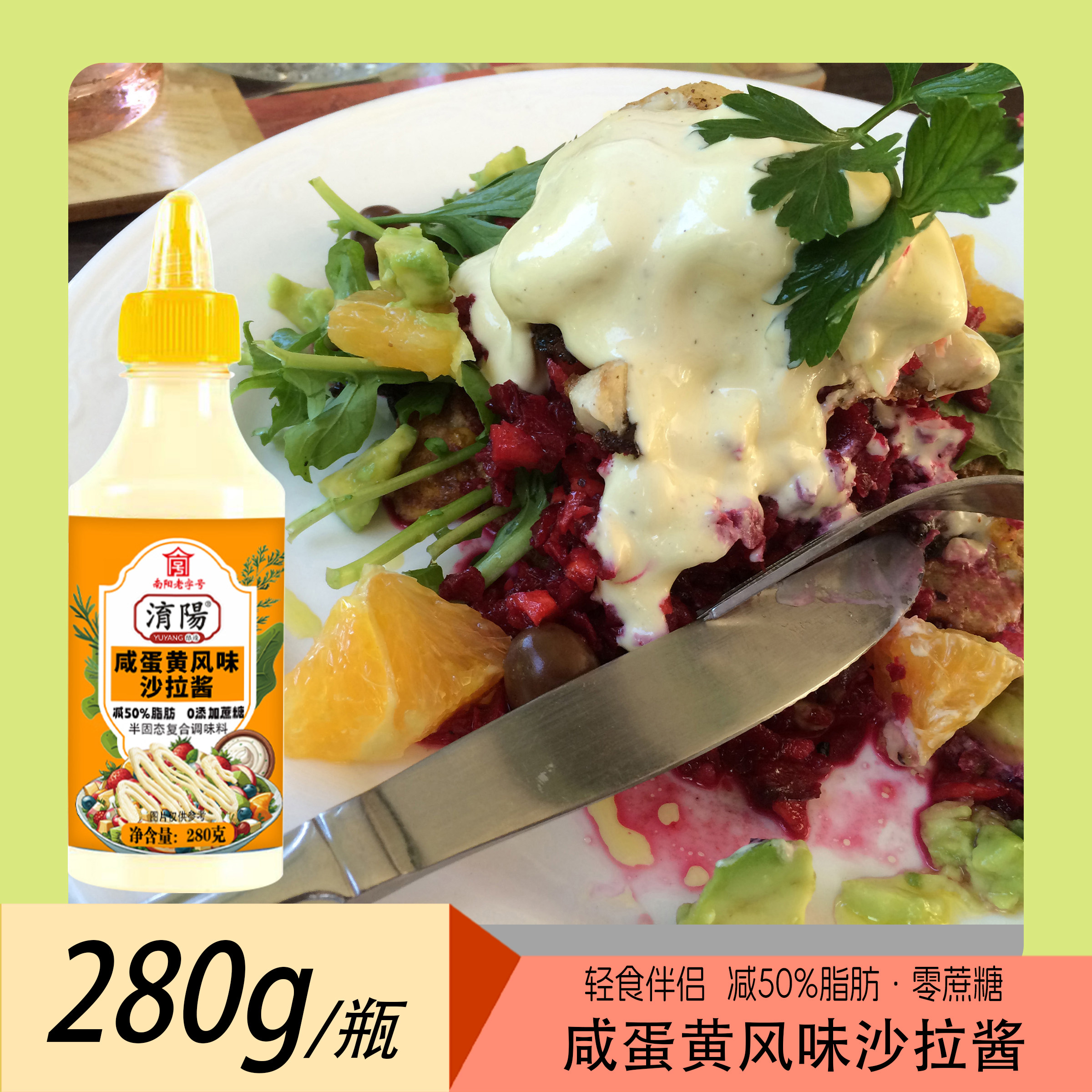 淯阳香甜、咸蛋黄、蜂蜜芥末口味炸鸡蔬菜轻食沙拉酱280g/瓶