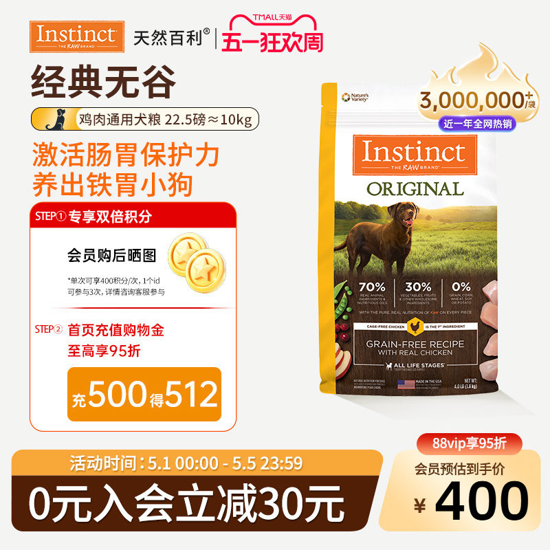 [临期]Instinct天然百利狗粮无谷鸡狗粮全犬粮22.5磅效期26年9月