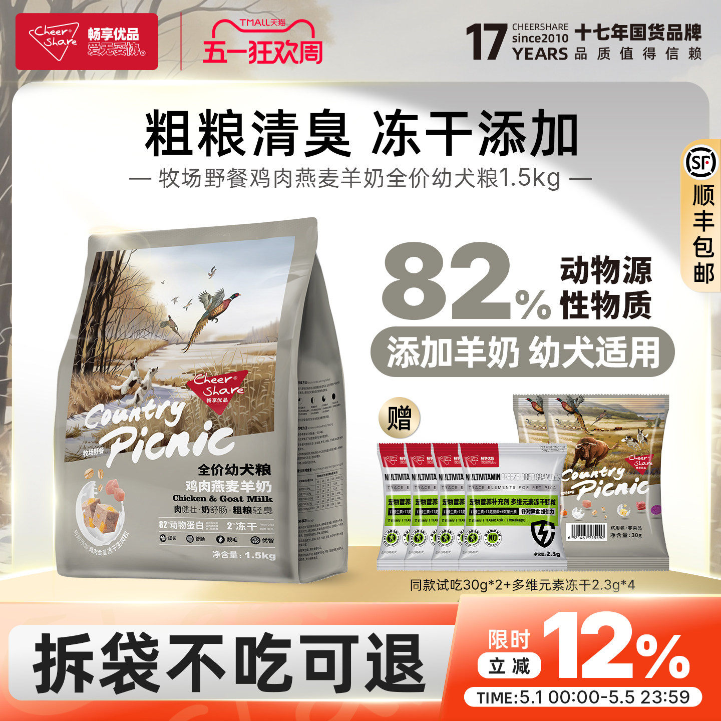畅享优品牧场野餐鸡肉燕麦添加羊奶冻干幼犬狗粮1.5kg