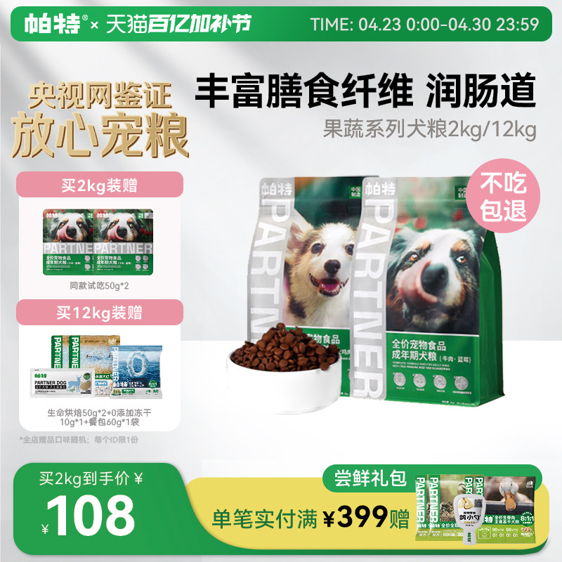 帕特旗舰店果蔬犬粮大型犬成幼犬通用小型犬蓝莓牛肉火鸡全价狗粮