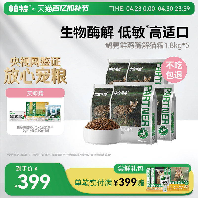 【囤货装】帕特纯粮猫粮酶解低敏适口无谷成幼猫鹌鹑鲜鸡肉配方